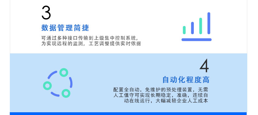 配置全自動,免維護的預處理裝置,無需人工值守可實現長期穩定,準確,連續自動在線運行,大幅減輕企業人工成本