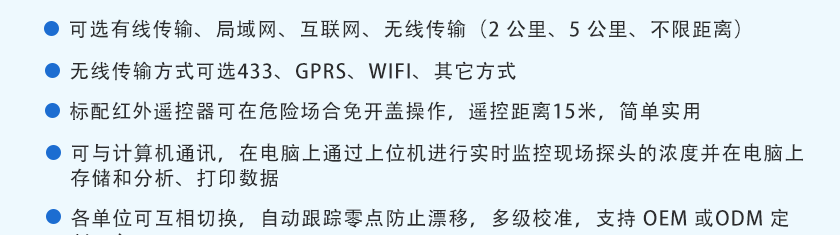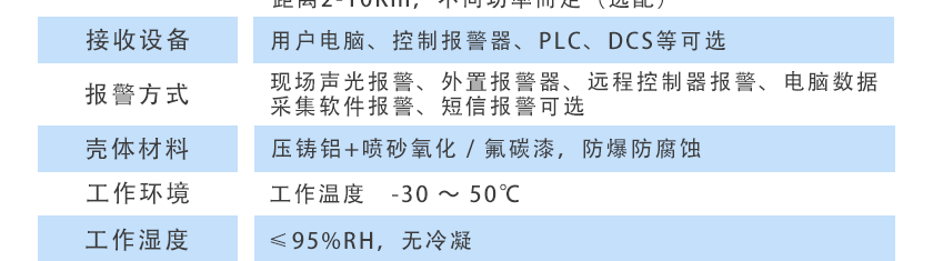 現場聲光報警、外置報警器、遠程控制器報警、電腦數據采集軟件報警、短信報警可選