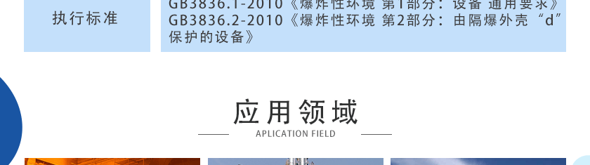 GB3836.1-2010《爆炸性環境 第1部分設備通用要求》 GB3836.2-2010《爆炸性環境 第2部分由隔爆外殼“d”保護的設備》