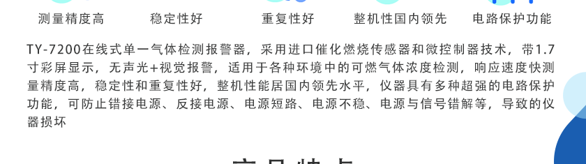 采用進口催化燃燒傳感器和微控制器技術(shù),帶2.5寸高清彩屏實時顯示,無聲光+視覺報警,現(xiàn)場多種氣體濃度 24 小時連續(xù)在線監(jiān)測及溫濕度的測量,適用于各種環(huán)境中的可燃氣體濃度檢測,響應(yīng)速度快,測量精度高,穩(wěn)定性和重復(fù)性好,整機性能居國內(nèi)領(lǐng)先水平。儀器具有多種超強的電路保護功能,可防止錯接電源、反接電源、電源短路、電源不穩(wěn)、電源與信號錯解等,導(dǎo)致的儀器損壞。