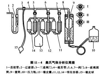 采用氫氧化鈉溶液吸收CO2,以焦性沒食子酸堿性溶液吸收CO2,采用爆炸燃燒法后采用吸收法測量CH4,從而測出CH4、CO2、O2的含量。