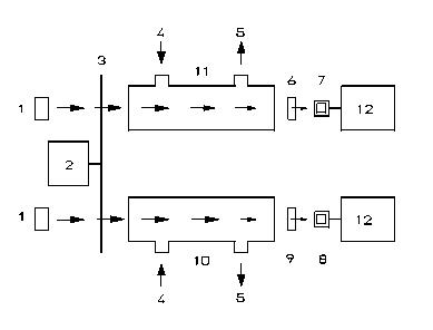紅外光源 ( 1 ),是通過電子加熱,并且發(fā)出寬帶紅外光。光束被旋轉的葉片( 切光器 )( 3 ),間斷切斷,產生交變光。切光馬達 ( 2 ),是由石英振蕩器控制。因此,紅外光的切光頻率是相當穩(wěn)定的。紅外光通過有樣品氣和載氣混合氣流通過的測量池 ( 10,11 )時,被吸收。 而紅外光被吸收的強度與氣體濃度有關,紅外光束通過測量池后,經過濾光片( 6,9 ),只有紅外光中窄帶通過。所選擇的中頻帶波長,是對氣體測量呈最大吸收的波長,通過濾光片后,光束強度是根據紅外池中氣體濃度來決定的,最后紅外光束照射到紅外檢測器 (7,8 )上,得到與光強成正比關系的電信號。
