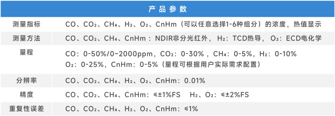 1)儀器測(cè)量樣氣中氣體的體積濃度同時(shí)輸出熱值,增加超量程限值使能功能,量程范圍內(nèi)保證測(cè)量精度,超量程可測(cè)量,提供測(cè)量值參考;