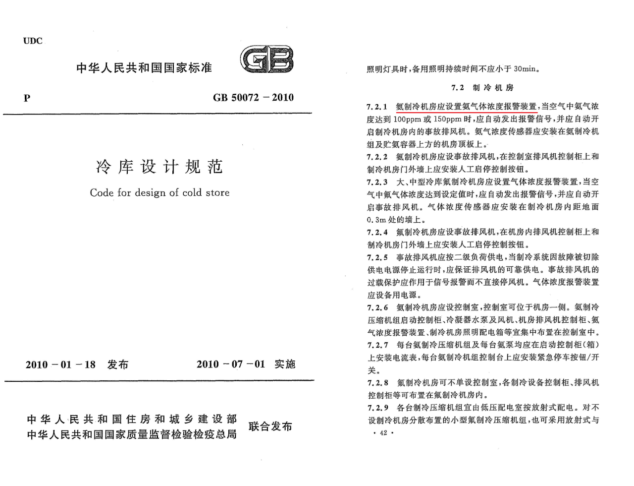 根據《GB50072-2010冷庫設計規范》氨制冷機房應該設置氨氣濃度報警裝置: