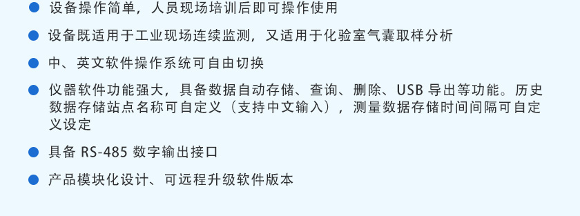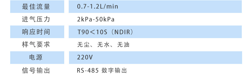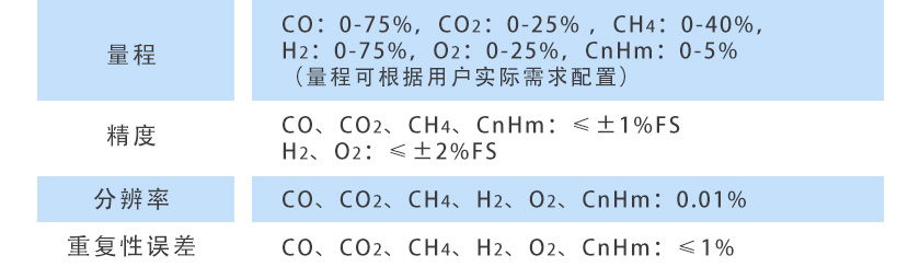 CO、CO2、CH4、CnHm:≤±1%FS;H2、O2:≤±2%FS