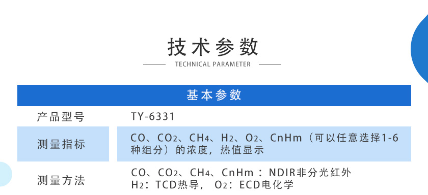 • 便攜紅外煤氣分析儀 TY-6330P 紅外煤氣成分及熱值分析儀采用進口NDIR非分光紅外傳感器,長壽命電化學傳感器和基于MEMS的熱導傳感器,運用先進的數字處理技術,可同時在線測量煤氣、生物燃氣中CO、CO2、CH4、H2、O2、CnHm等六種氣體的體積濃度,根據氣體濃度值快速準確計算出相應的熱值。