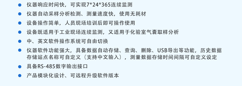 (7)儀器響應時間快,可實現7*24*365連續監測。