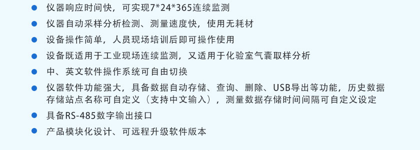 7)儀器響應時間快,可實現7*24*365連續監測。