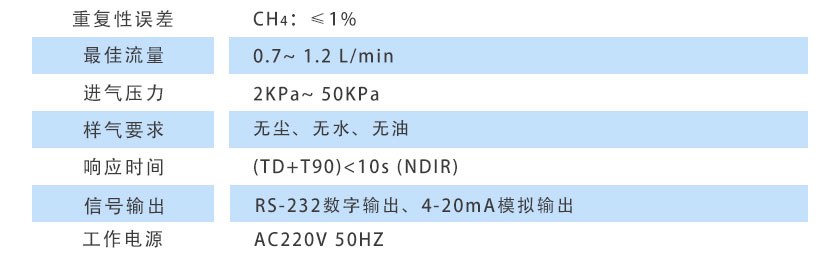 4)分辨率:CH4:0.01%(針對低量程分辨率可以達到1ppm)