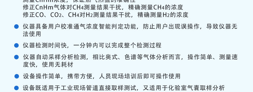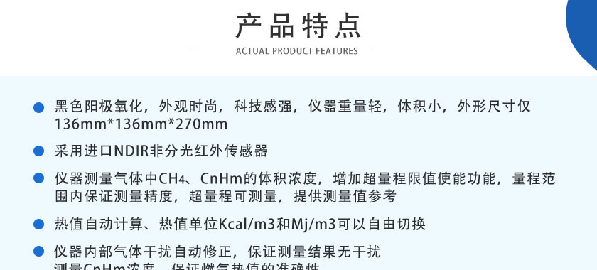 采用自主知識產(chǎn)權(quán)的NDIR非分光紅外技術(shù),主要用于測量氣體中的CO、CO2、CH4、C3H8、SO2、NO等氣體的體積濃度及熱值。全進口傳感器、測量精度高、結(jié)構(gòu)簡單、維護方便,軟件功能強大,可拓展性強、現(xiàn)場實用性好,目前暢銷國內(nèi)外。