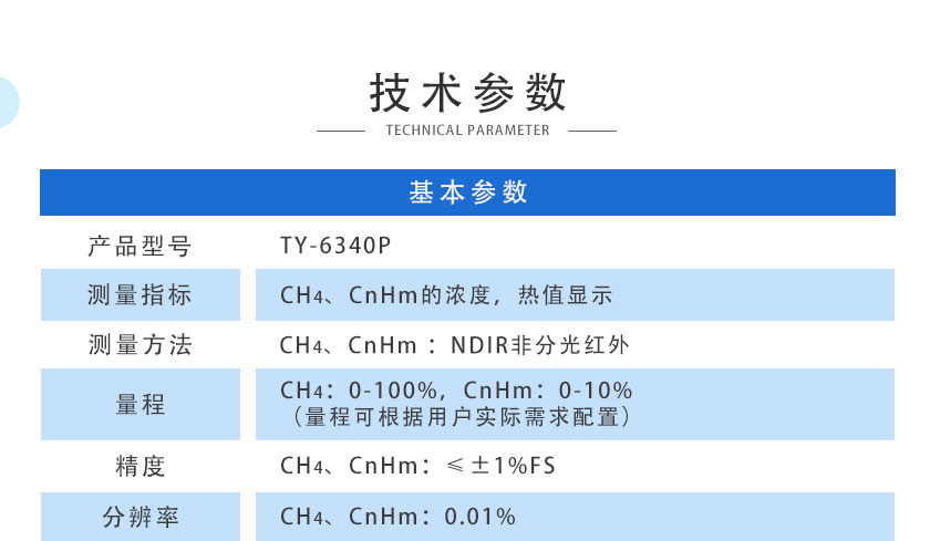 CH4:0-100%;CnHm:0-10%(量程可根據(jù)用戶實際需求配置) |