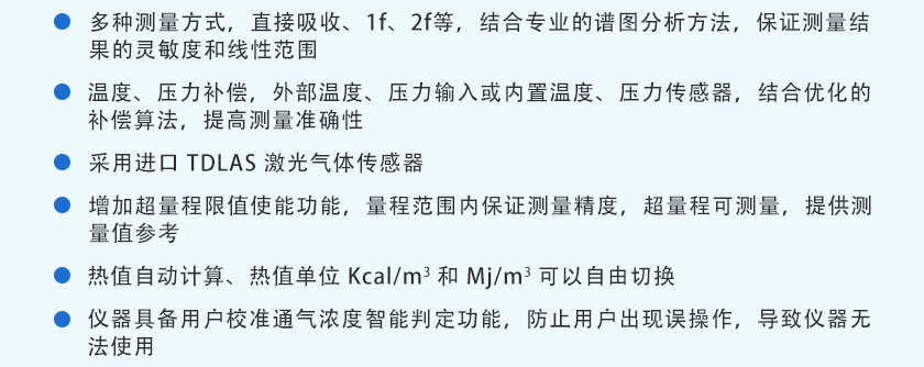 采用國際先進的TDLAS激光技術,主要用于測量各種天然氣、生物燃氣中的CH4、CnHm?等氣體體積濃度及熱值。