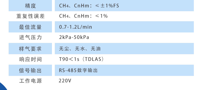 CH4、CnHm:≤±1%FS |