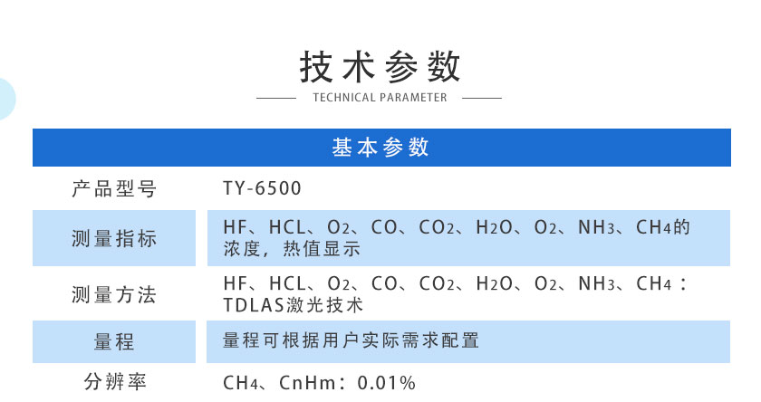 在線激光氣體分析儀TY-6500采用國際最先進的TDLAS激光技術,主要用于測量各種氣體中的HF、HCL、O2、CO、CO2、H2O、O2、NH3、CH4?等氣體體積濃度及熱值。