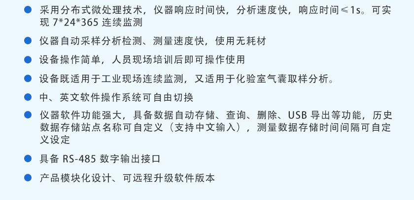 采用自主知識產權的NDIR非分光紅外技術,主要用于測量氣體中的CO、CO2、CH4、C3H8、SO2、NO等氣體的體積濃度及熱值。全進口傳感器、測量精度高、結構簡單、維護方便,軟件功能強大,可拓展性強、現場實用性好,目前暢銷國內外。