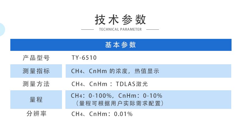 CH4:0-100%,CnHm:0-10%(量程可根據用戶實際需求配置)