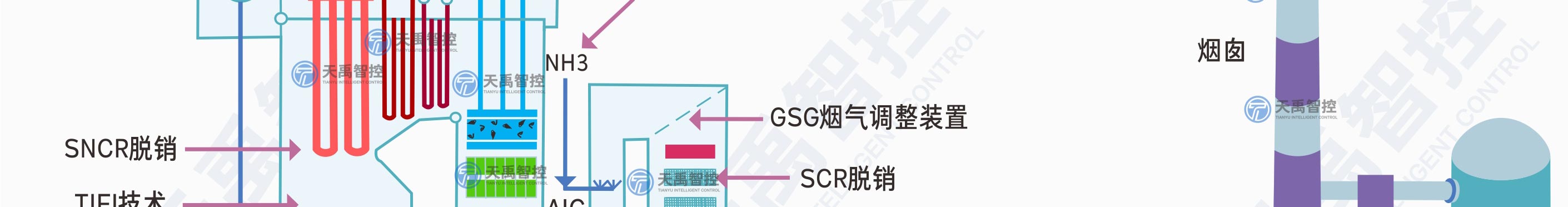 氨逃逸的形成       在大規模燃燒礦物燃料的領域,例如燃煤發電廠,都安裝了前燃(pre-combustion)或后燃(post combustion)NOX控制技術的脫硝裝置,后燃NOX控制技術可以是選擇性催化還原法(SCR)也可以是選擇性非催化還原法(SNCR),但是無論應用哪種方法,基本原理都是一樣的,即都是通過往反應器內注入氨與氮氧化物發生反應,產生水和N2。注入的氨可以直接以NH3 的形式,也可以先通過尿素分解釋放得到NH3再注入的形式,無論何種形式,控制好氨的注入總量和氨在反應區的空間分布便可以較大化的降低NOX排放。
