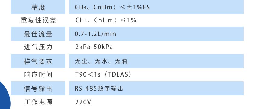 CH4:0-100%,CnHm:0-10%(量程可根據(jù)用戶實際需求配置) |