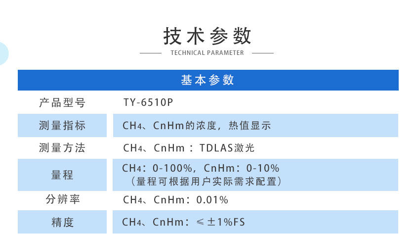 CH4:0-100%;CnHm:0-10%(量程可根據用戶實際需求配置)