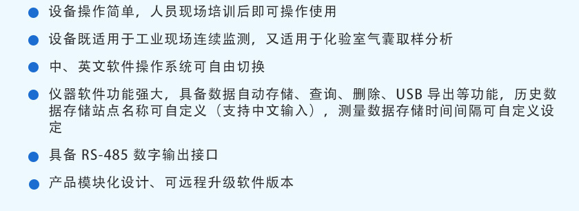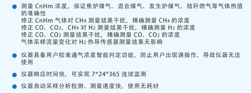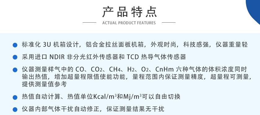 CO、CO2、CH4、CnHm :NDIR非分光紅外; H2:TCD熱導, O2:ECD電化學 |