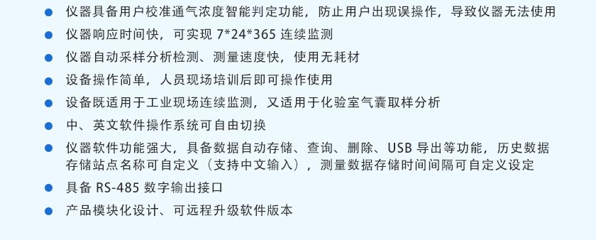 9)儀器響應時間快,可實現7*24*365連續監測。