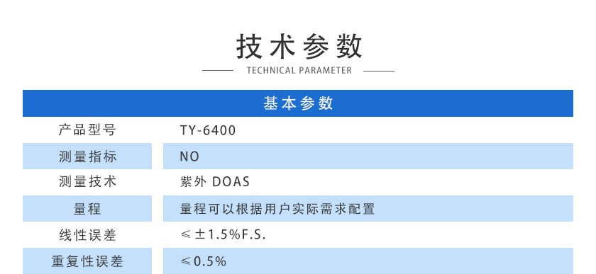 在線紫外一氧化氮分析儀TY-6400(NO)是公司針對國內外環保在線監測、工業在線分析自主研發的氣體分析產品。該分析儀基于紫外差分吸收光譜技術(DOAS)和化學計量學算法(PLS),能夠測量CO等氣體濃度,具有測量精度高、可靠性強、運行成本低、響應時間快、量程跨度大、應用范圍廣等特點。 產品廣泛應用于燃煤發電廠、垃圾發電廠、水泥廠、玻璃廠、石灰廠、陶瓷廠、燒結、焦爐、脫硫工藝、脫硝工藝等尾氣排放監測和過程控制.